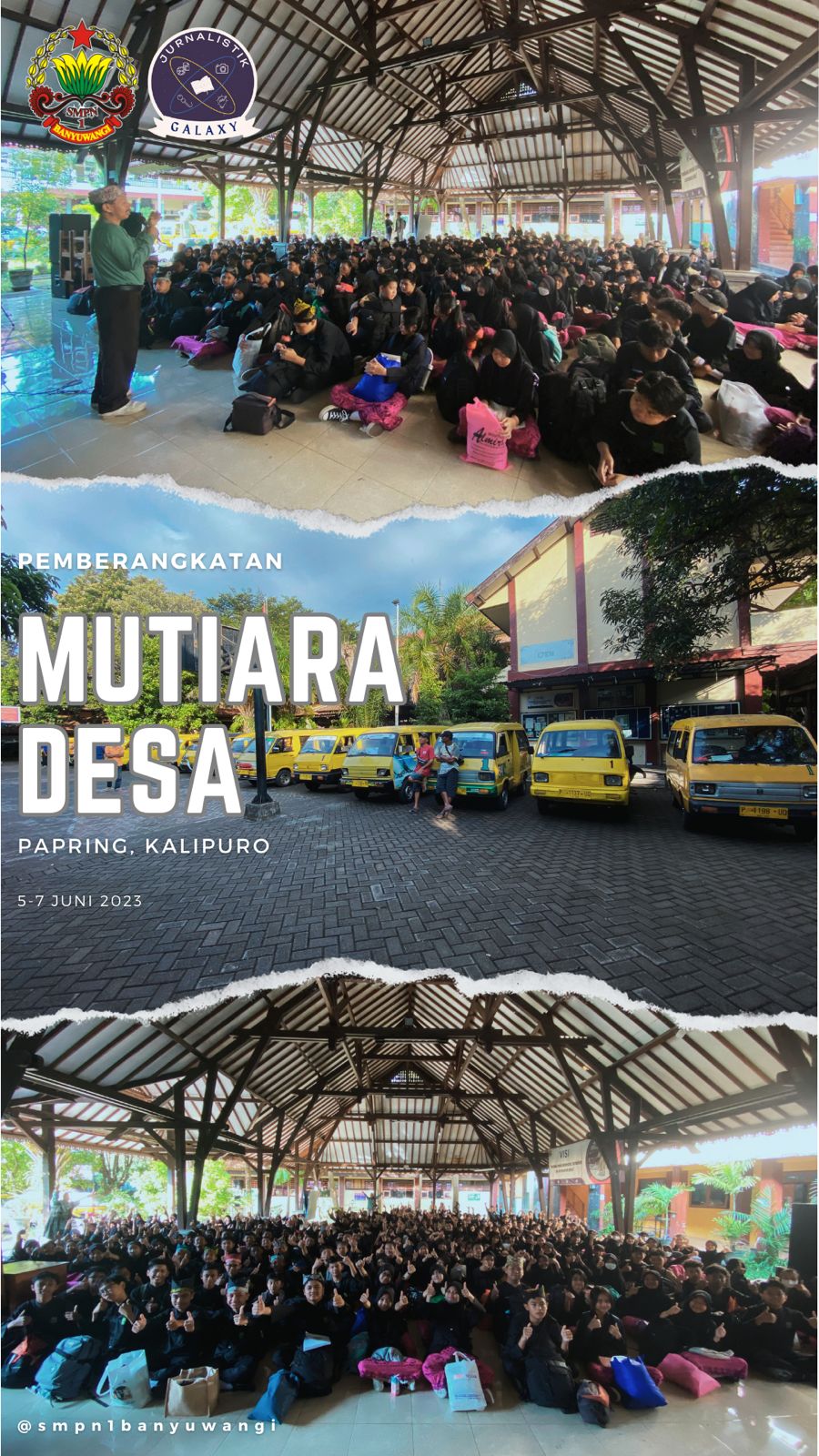 Kegiyatan iki dipiloni kabeh lare kelas VII hang akehe ana 285. Senin (5/5), manggon ring Rumah Budaya Kampoeng Batara, Papring – Kalipuro, lalare iki wis dipapag lan dianteni Emak Apak Induk Semang (Orang Tua Asuh). Ana 74 KK hang dipanggoni (39 kelompok murid wadon lan 35 kelompok murid lanang) sampek dina Rebo kisuk (7/5).